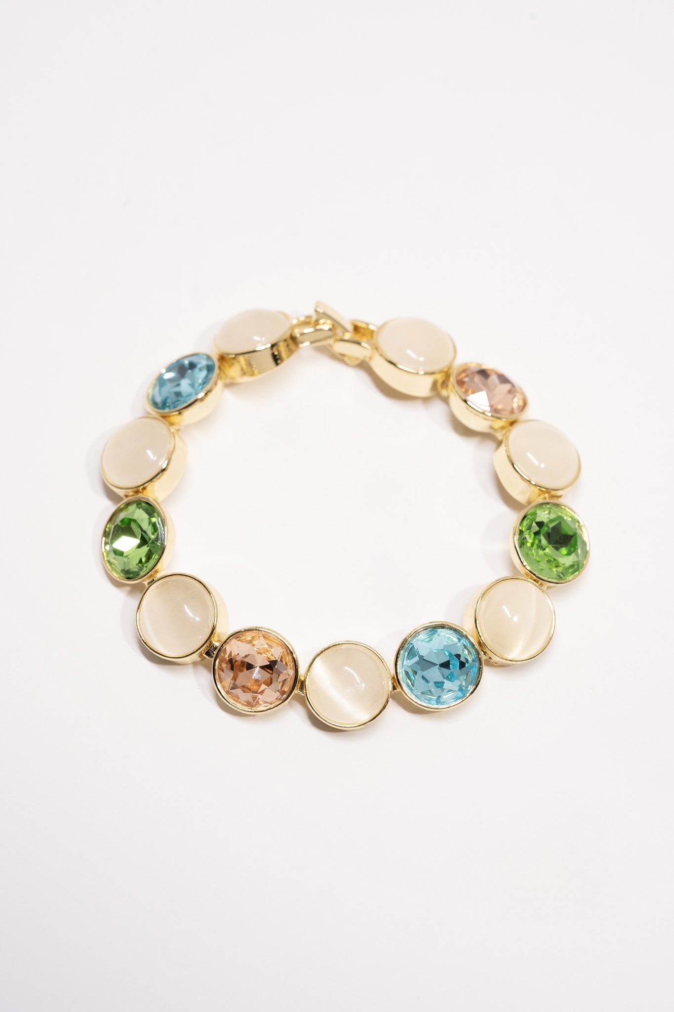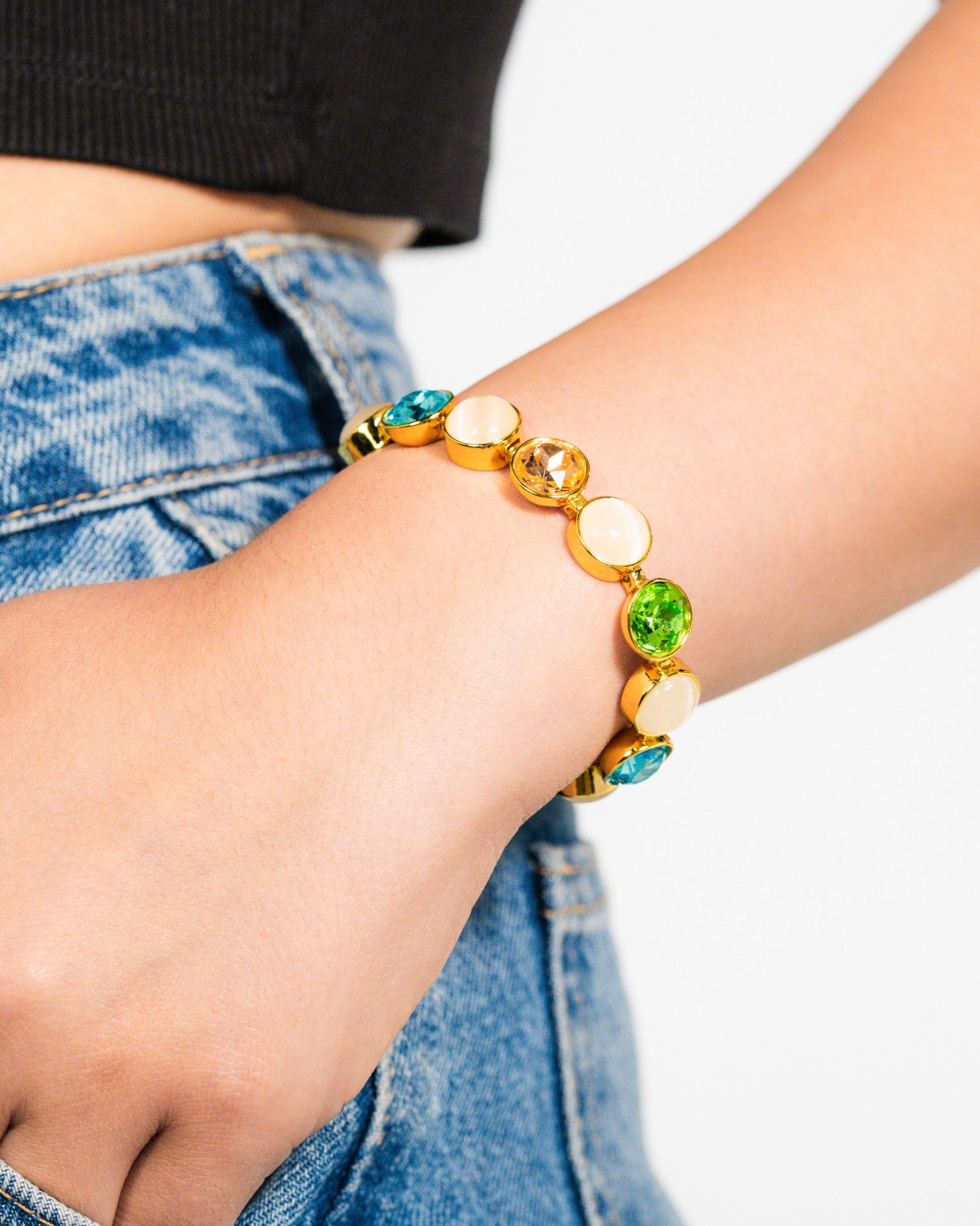 Renkly Bracelet stands out with its modern design that blends elegance and vibrancy. The large round stones in various colors perfectly complement the gold-toned bracelet body. It’s the ideal accessory to energize your daily outfits or to complete your look on special occasions.