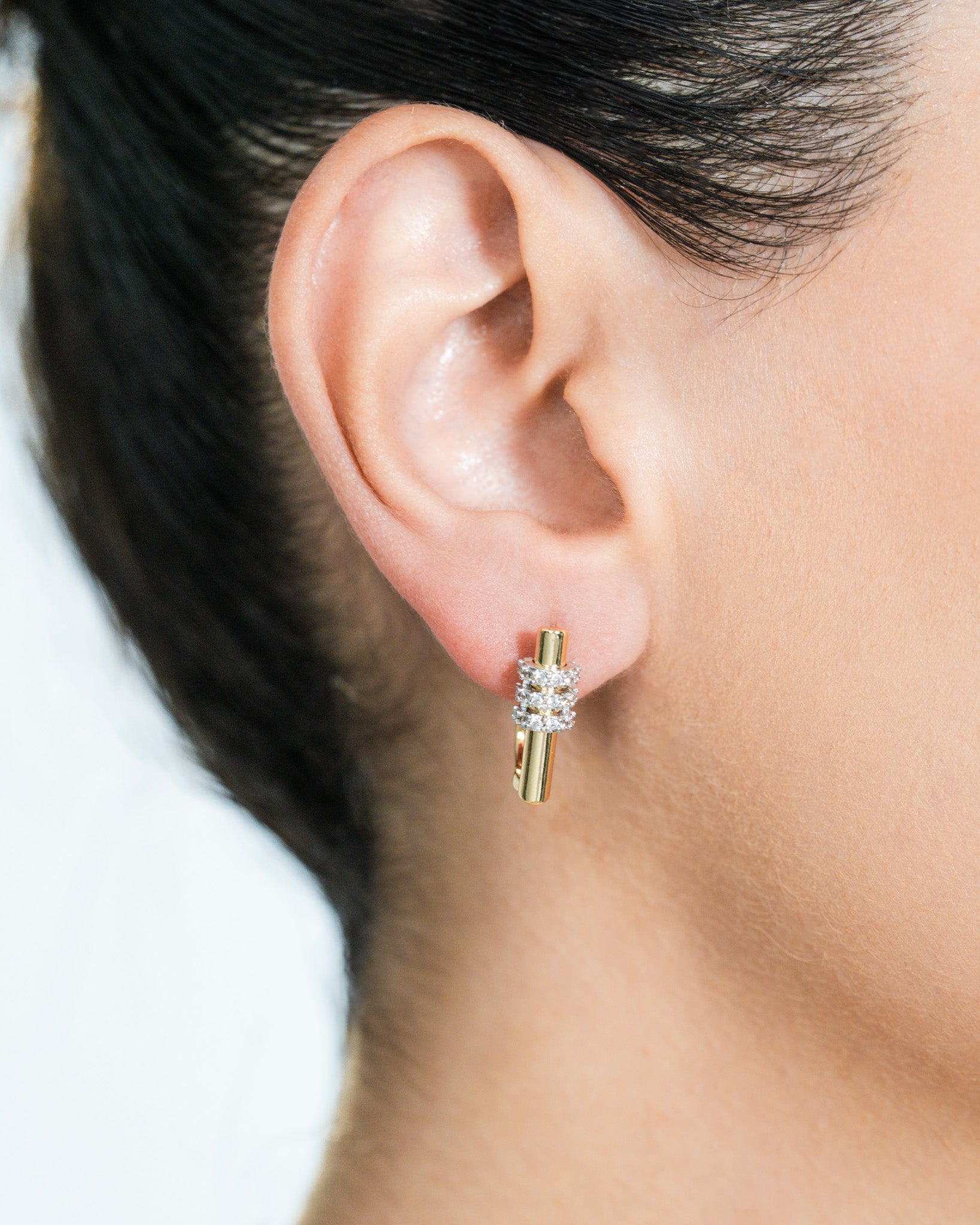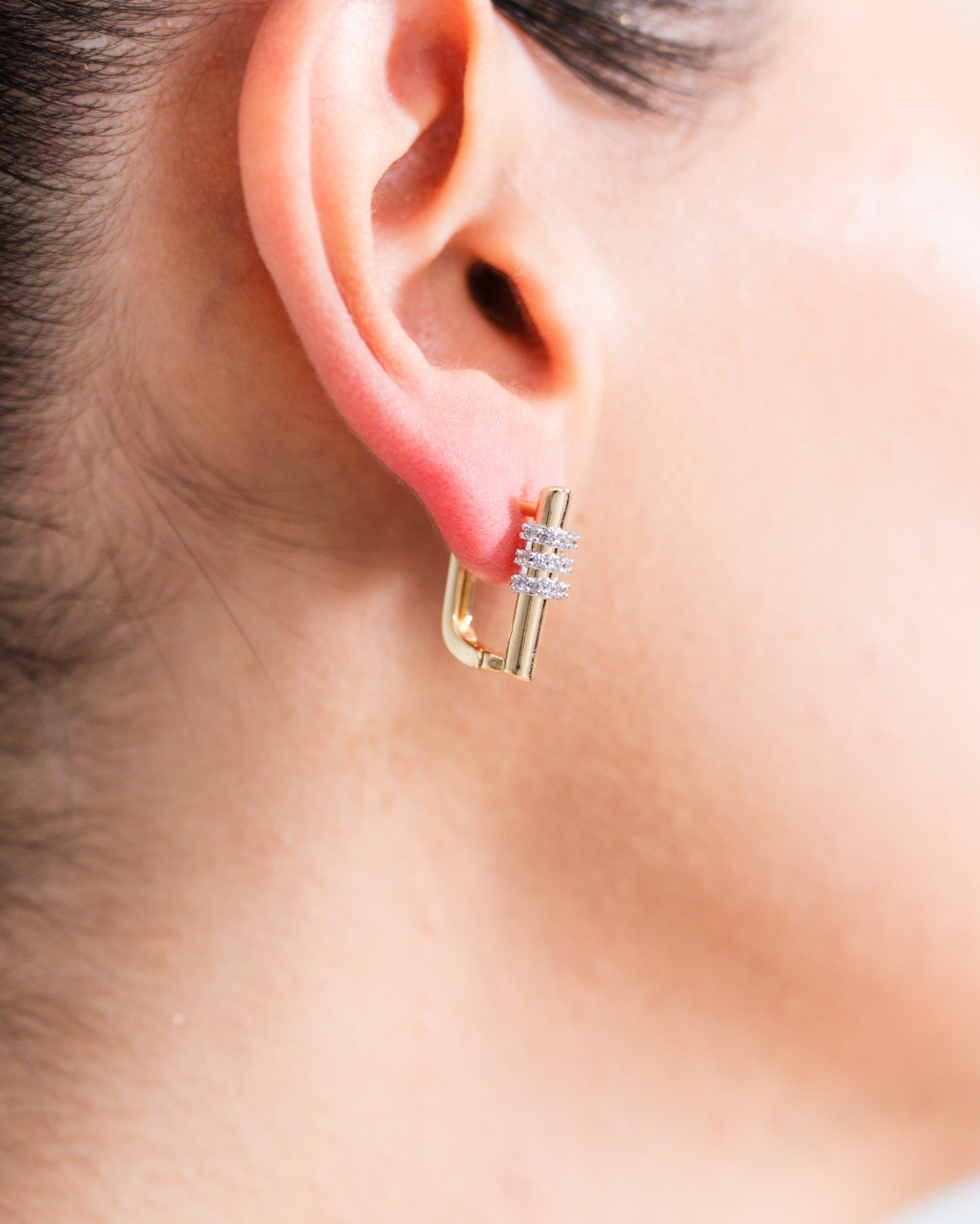 Cubh Earrings bring together elegance and understated sophistication with minimalist lines and a modern design. Cylindrical stone details integrated into the gold-toned geometric body add sparkle with every movement, thanks to shimmering zircon stones that elevate your style. With its timeless design, it’s perfectly suited for both daily wear and special occasions.