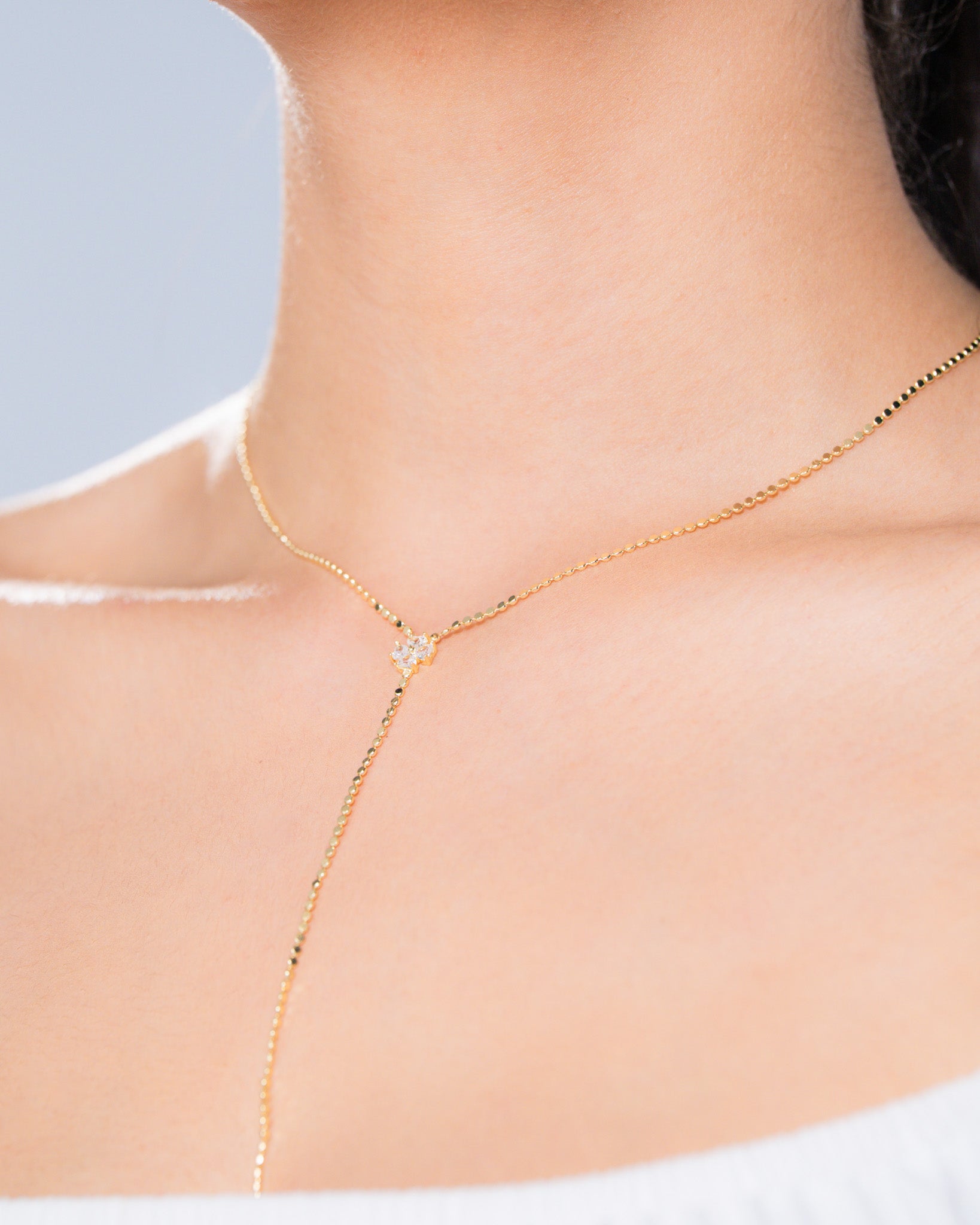 Sequin Y Necklace is the signature of a romantic style with its delicate beaded chain and floral stone detail at the center. The Y-shaped design elegantly highlights the neckline and matches any outfit with its minimal elegance. Sparkling stone touches bring understated sophistication to life.