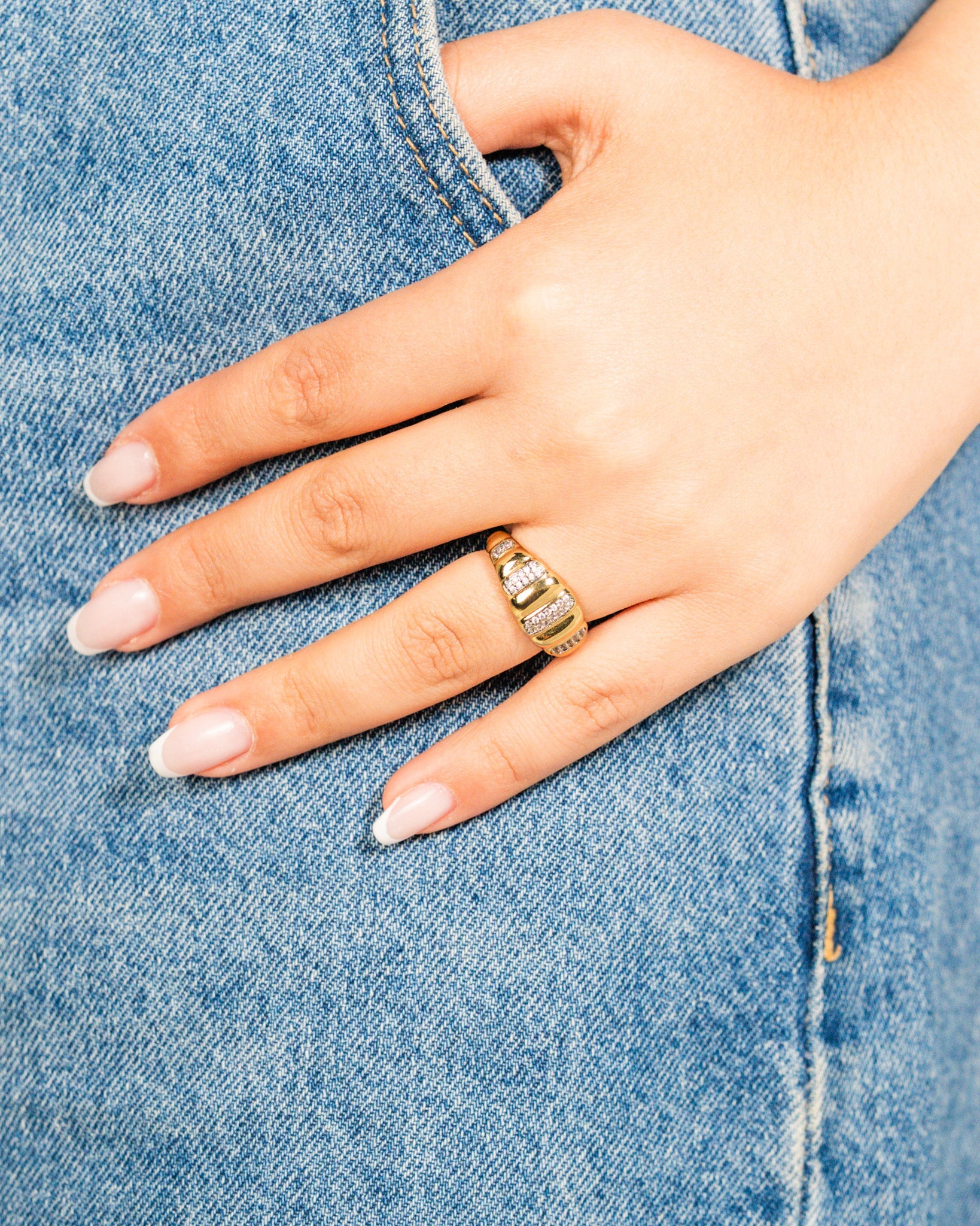 Seashell Ring is a modern and unique accessory inspired by the elegance of nature. Its wavy form, reminiscent of the natural curves of a seashell, meets a shiny gold-plated surface adorned with sparkling micro zircon stones to create a sophisticated look. With its organic yet striking structure, it adds a refined touch to your daily style.